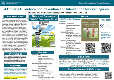 The purpose of this capstone project was to create a guidebook for golfers who can be at increased risk for medial epicondylitis focused on prevention and intervention strategies to support productivity, leisure participation, and self-care.